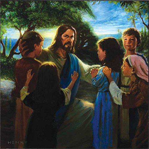 - Features Jesus with small chidlren in vibrant colors
