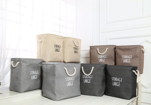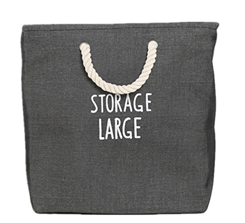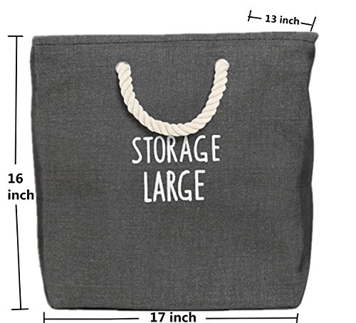 FUNNYGO thicken Storage Bin with Cotton Handles Decorative Baskets for Toys, Nursery, Baby and Laundry Hamper (DarkGrey)