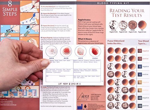 -. Title : Blood Type Kit - Also Includes: 1 Eldoncard, 1 lancet, gauze, alcohol wipe, micropipette