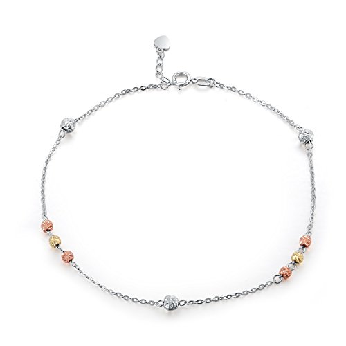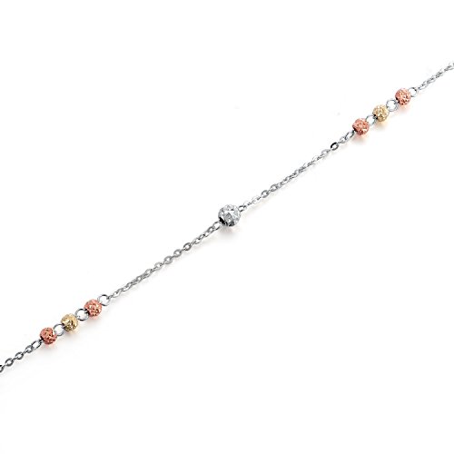 14K Tri-Color Gold Tiny Bead Station Anchor Chain Anklet (9')