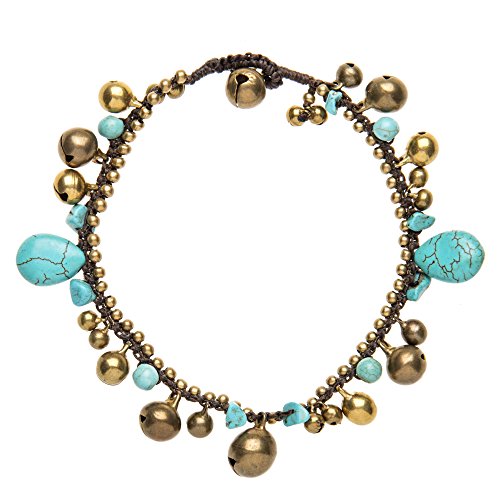 This is a beautiful handmade anklet made with brass bells and simulated turquoise beads. The length is 26 cm and will fit ankle size up to 24 cm.
