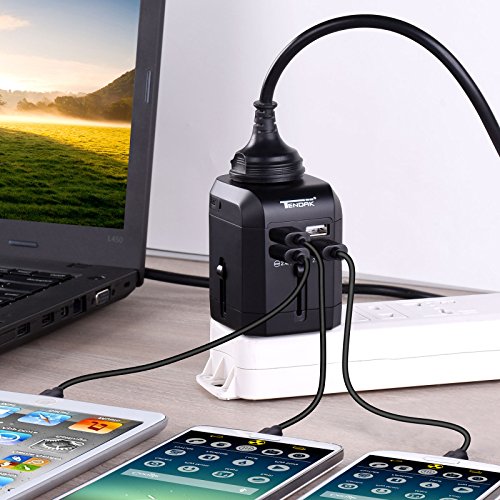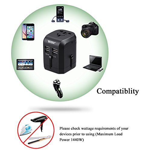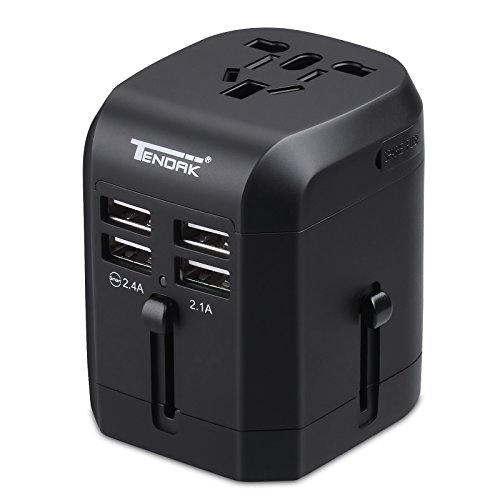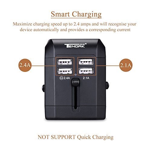 Travel Charger Adapter, Tendak 4-Port USB Wall Charger with US UK EU AU Universal International Power Plug Adapter for iPad, iPhone, Samsung Galaxy S7 / S6 Edge, Note, LG, HTC, Power Bank and More