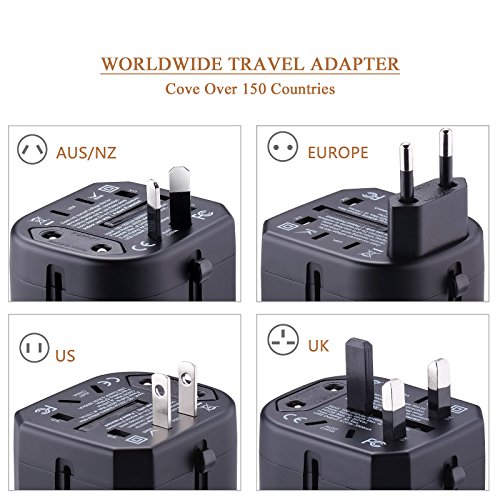 ALL IN ONE WORLDWIDE TRAVEL ADAPTER - Fitted with US UK EU & AU/CN including United States, Canada, Europe, UK, Germany, France, Great Britain, Ireland, Africa, Hong Kong, European, Singapore, Australia, Brazil, New Zealand, China, Japan, USA, Italy and more countries