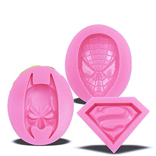 Set of three (3) 3D Silicone Molds in Superman Logo, Spiderman Face and Batman Face For Sugarcraft, Fondant, Chocolate, Gum Paste, Marzipan or Craft Clays For Cake or Cupcake Decorating