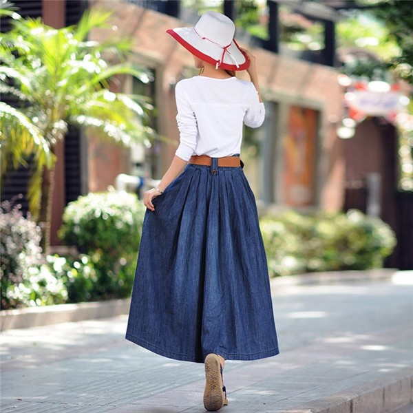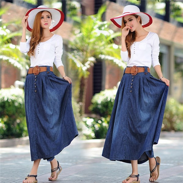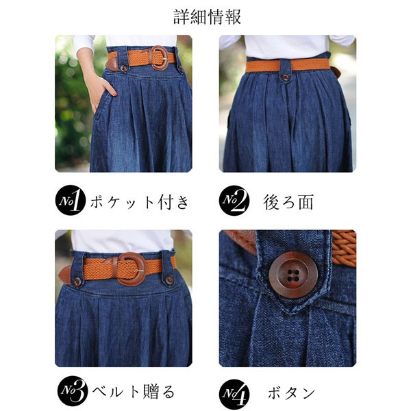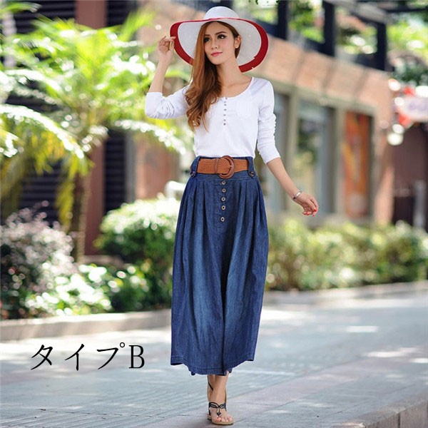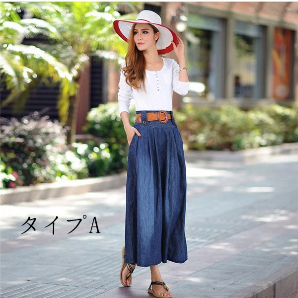 デニム フレア ロング スカート Aライン レディース カジュアル ロングスカート マキシ丈 大振り ウェストゴム コーディネート 大きいサイズ ベルト付きメイン素材:ポリエステル、コットンカラー:タイプA(前ボタンなし) タイプB(前ボタンある)サイズ:S M L XL 2XL 3XL 4XL 5XLラインの美しいデニムスカートです。ウエストはゴムで履きやすく、ウエストからAラインに広がるフレアなスカートは女性らしいシルエットを演出してくれます。色々なトップスとコーデしやすく、ロングシーズン使いまわせる。注目されるスタイル、着こなし幅が広がる、存在感のあるな一着。サイズは、実寸を測っているため多少の誤差はございます。実商品とPC画面では、多少見た目の色に違いがございます。初期不良の場合、未使用の商品のみ到着日から7日以内にご連絡頂ければご返金、交換対応させて頂きます。●商品が到着しましたら、必ず中の商品を確認していただき、商品の到着後、3-4日間以内に必ず弊社までご連絡ください。★いかなる理由であってもご使用後の返品交換は承れません。