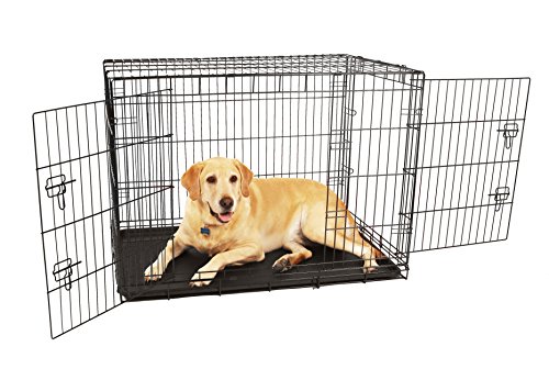 -. Binding : Misc. -. Brand : Carlson Pet Products -. Color : Black -. EAN : 0891618001714 -. Feature : Durable all steel construction; For Indoor and Outdoor use / Two Door design for added convenience / Features Double Locking System for Security and Safety / Includes a black removable and washable pan / For larger breeds, up to 95 pounds -. Label : Carlson Pet Products -. Manufacturer : Carlson Pet Products -. Model : 6024 DS -. MPN : 6024 DS -. PackageQuantity : 1 -. PartNumber : 6024 DS -. ProductGroup : Pet Products -. ProductTypeName : PET_SUPPLIES -. Publisher : Carlson Pet Products -. Size : Large -. Studio : Carlson Pet Products -. Title : Carlson Compact and Secure Double Door Metal Dog Crate, Large, Black with Divider Panel -. UPC : 891618001714