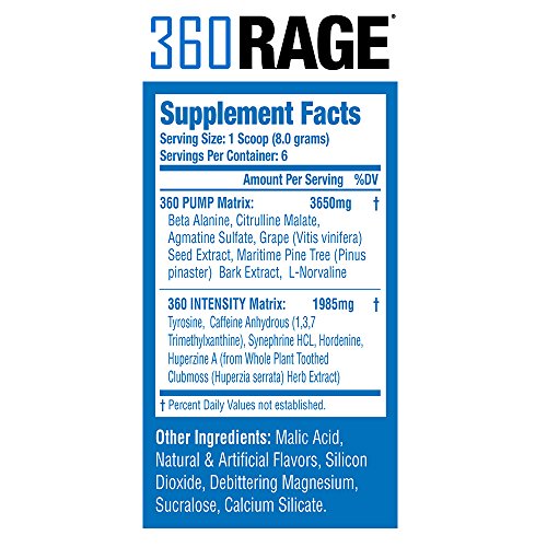 ReleaseDate : 2015-10-05 Studio : 360CUT Performance Supplements Publisher : 360CUT Performance Supplements Binding : Health and Beauty Product Description WHAT IS 360RAGE? 360RAGE is formulated to be the most explosive and energizing pre-workout formula on the market. Its scientifically formulated ingredients are delivered in a great-tasting flavored supplement powder. ? WHAT DOES 360RAGE DO? Our unique supplement formula boosts your intensity allowing you to handle heavier, harder, and more intense pumps. The gains you've been working for will finally be in your reach. ? WHY CHOOSE 360RAGE? Designed to be the most explosive and energizing pre-workout formula on the market. Combined with intense stimulant factors and nitric oxide enhancers, 360RAGE will help give you the power to blast through your most grueling workouts. Prepare to hit those previously out of reach pumps and take your workout to a whole new level. 0 |