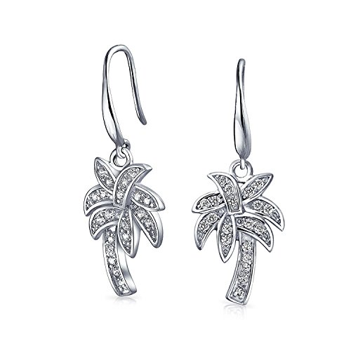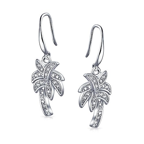 If you love palm trees and the ocean breeze then get these sterling silver 1.29in palm tree earrings. These french hook dangle earrings have pave CZ to remind you of beaches, even during a blizzard.