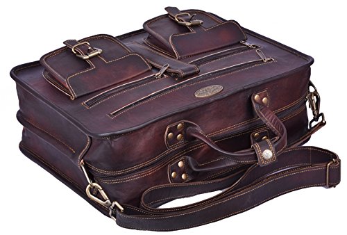 -. Title : Handmade World Leather Messenger Bag - 16 Inch Briefcase Messenger Bag Brown Leather with Crossbody Shoulder Strap - Great Messenger Bag for Laptops, Business, Travel, or School
