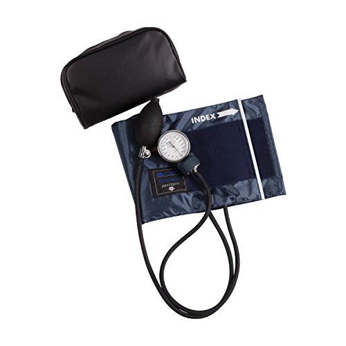 -. Feature : This professional quality MABIS Precision Series Aneroid Sphygmomanometer Manual Blood Pressure Monitor is similar to those used in doctors' offices and hospitals. It comes with all you need to start taking your blood pressure at home without the need for electricity or batteries. Easy! / Superior design. This sphygmomanometer features an easy squeeze inflation bulb that comfortably fits in your hand. The aneroid gauge shows large easy-to-read numbers, perfect for those with poor vision. You will enjoy its manual design to gain accurate results. / Convenient zippered carrying case ensures you will always have this handy blood pressure kit ready to go. Ideal for doctors, nurses, EMTs, other medical professionals and students! / Arm cuff comfortably fits arm circumferences between 13 and 20 inches. / INCLUDES: standard air release valve, inflation bulb, blue nylon calibrated cuff, convenient carrying case and 10-year replacement warranty on the gauge. Contains latex.