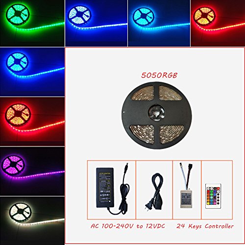 -. Title : 5050 RGB LED Strip Lights Kit High Bright 72W 12V DC 5Meters/Roll 14.4W/Meter with AC 100-240V to DC 12V Transformers and 24 Key Remove Controller Waterproof for Holiday Decoration TV/Bar/Party