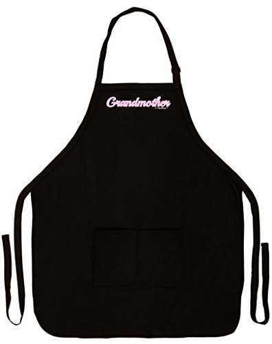 Mother's Day Gift Grandmother Script Apron for Cooking Baking Crafting Gardening Two Pocket Apron for Grandma or Mom Black