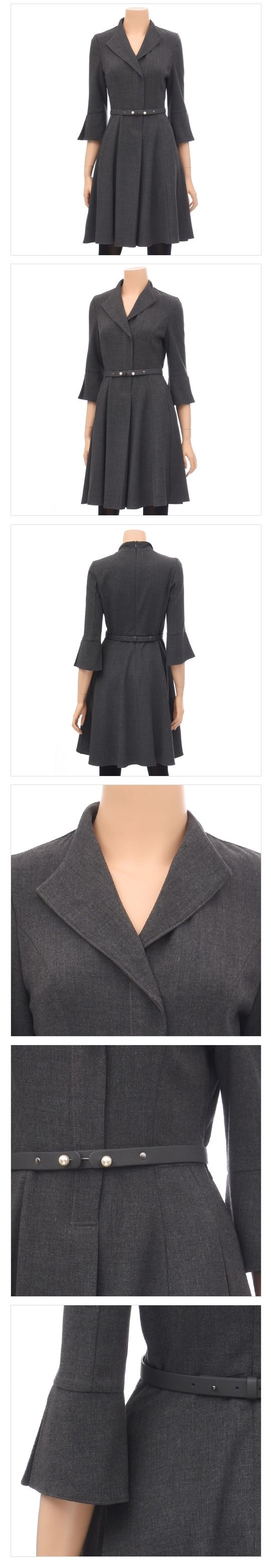 리버스 형태의 카라가 매력적인 플레어 라인 원피스입니다.