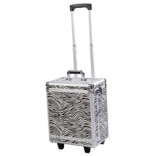 -. Feature : Color: Black Diamond/ Black / Zebra / Material: Reinforced Aluminum Fram And Reinforced Steel Corners Black Velvet Insulate Lined Wood Extendible Trays / Overall Makeup Case Dimensions: 14.25"×9"×30" (L×W×H) / Overall Dimension With Handle: 14.25"×9"×39.75" (L×W×H) / Package Includes: 1x Makeup Train Case; 2x Keys