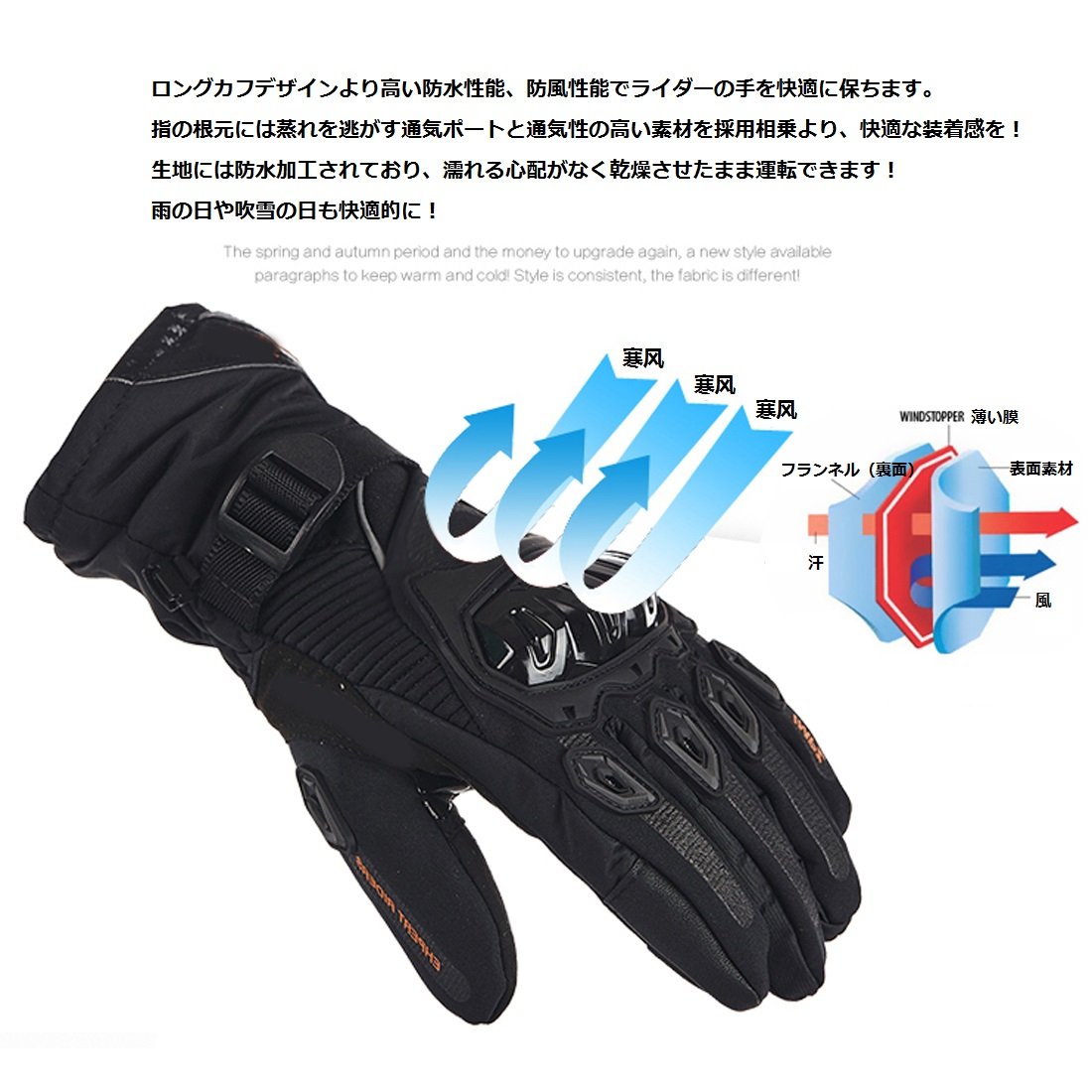 Windproof / heat retention: Long cuff design Higher waterproof performance, wind protection performance keeps rider's hand comfortable.