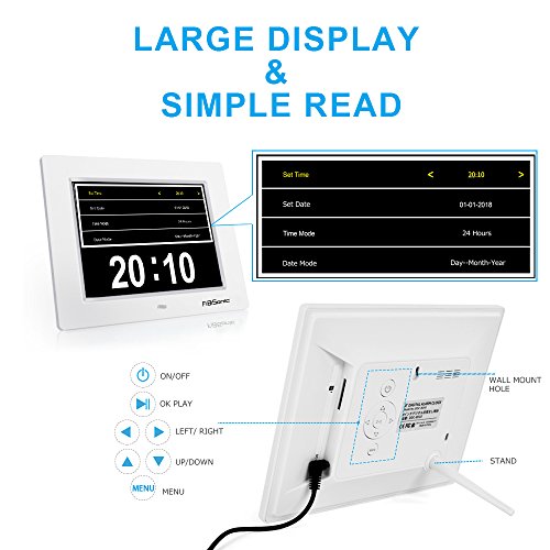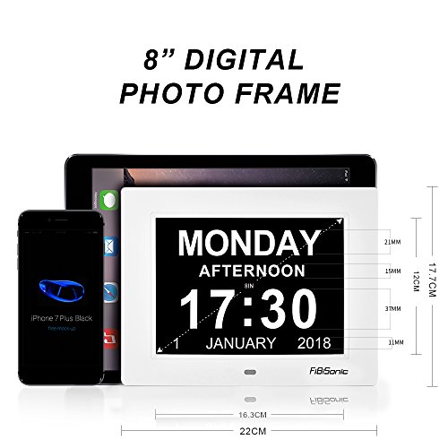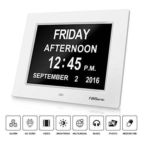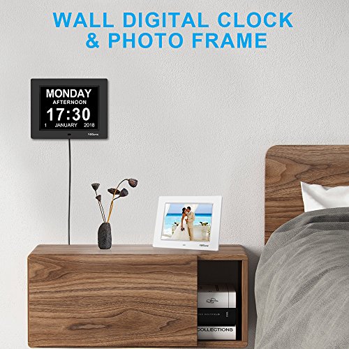 -. Binding : Kitchen -. Brand : FiBiSonic -. ProductGroup : Home -. ProductTypeName : HOME -. Title : Digital Clock, Large Digital Frame Wall Hanging Black Alarm Clock&Multiple Alarms, Music&Photo Player Easy Setup & Medicine Reminder Display for Elderly People, Good Gift for Mom&dad