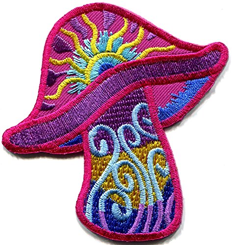 Mushroom boho hippie retro love peace weed trance embroidered applique iron-on patch