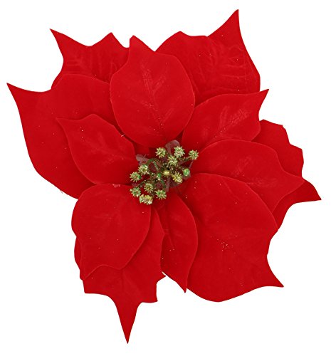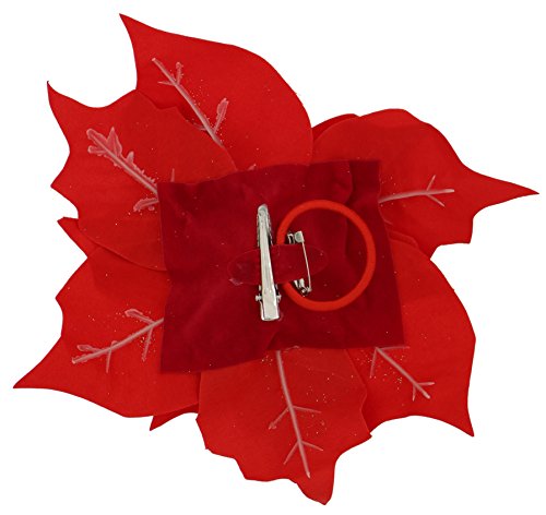 This is a stunning, oversized poinsettia flower in red that can be worn many ways. On the back there is a pin, clip and hair tie ring (ponytail holder). The flower measures a generous 9" in diameter. You can pin it on your lapel, hat, sweater or scarf. Or clip it on your purse, pocket or in your hair, or use the ponytail ring for your ponytail or to accent a bottle of wine, or package. This flower will go perfectly well with your ugly Christmas sweater too! Wherever you decide to place it, it will be stunning and an eye catcher! The flower will arrive in a convenient gift box with a clear top for presentation.Feature