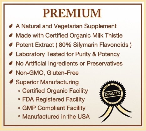 Certified ORGANIC Milk Thistle Extract (80% Silymarin Flavonoids) Plus Turmeric - 120 Veggie Capsules