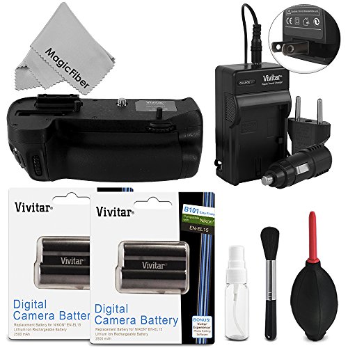 - The Vivitar MB-D15 Battery Grip is a comfortable and secure way to extend your battery life. It allows you to install one EN-EL15 batteries to your camera to effectively double your shooting time. Furthermore, the grip can hold six AA batteries for emergency cases.