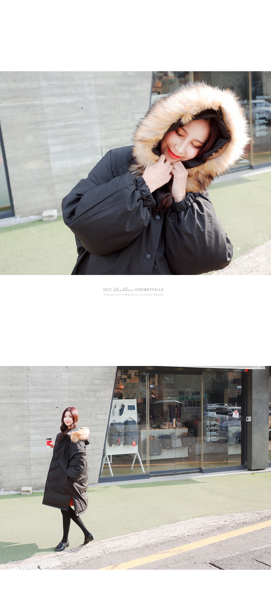 후드 스타일이며 퍼는 탈부착이 가능한 디자인이에요
