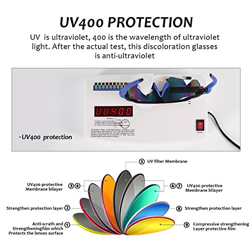 Studio : WHEEL UP Publisher : WHEEL UP Product Description Packing list 1 Glasses 1 High quality hard glasses box 1 Lens cloth 1 Glasses bags 1 Myopia frame 1 Sport glasses rope 1 REVO Coating lens 1 Yellow lens can be used at night or cloudy 1 Gray lens ,polarized 1 Transparent lens,can be used in snow 1 Brown lens,suit for bright sun light 1 Polarized test piece Glasses Size Frame width:139.5mm Bridge width:18.7mm Frame height:45.2mm Temple length:126mm Lens width:14mm Specifications 1.Frame Material:Memory plastic(light,comfortable,durable) 2.Lens Material:PC impact-tough REVO UV400 3. 2.Color:Red,Blue,Green,Silver,Transparent gray 3.Weight:0.3kg Feature 1.REVO Coating 2.UV-proof 3.HD view(Differen lens) 4.Adjustable nose care 5.Air-througthAnti-fog Applicable Riding,Mountain climbing,Hiking,Fishing,Skiing,Driving,Travelling 0