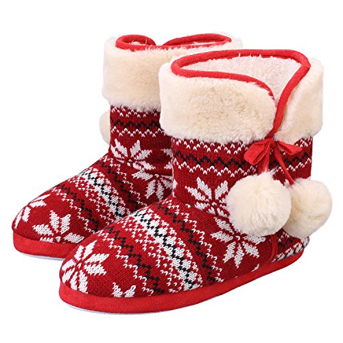 -. Feature : These indoor slipper booties featuring knit cashmere upper with pompoms, fleece lining and anti slip rubber sole for indoor and outdoor wearing / Great for cold winter days and nights, ultra-comfortable and lightweight booties keep your feet toasty warm / Extremely warm, soft and comfy. Perfect Chiristmas gift for moms, sisters, girlfriends, teachers etc.