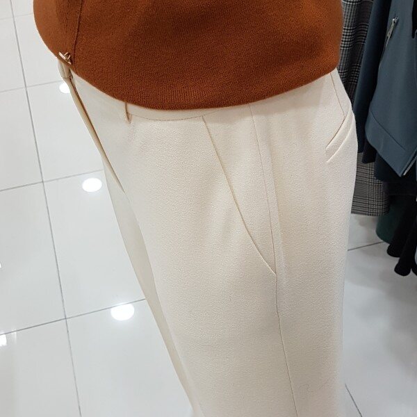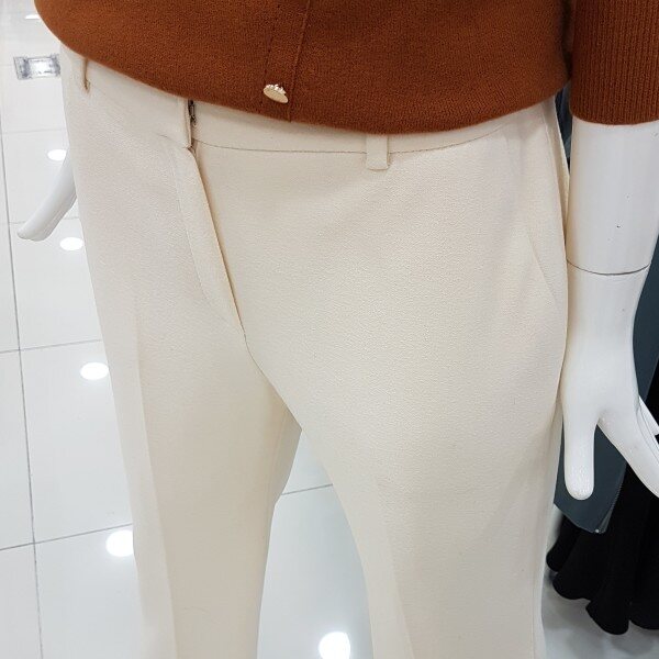 일자핏에 기본슬랙스네용아이보리컬러에 화사하구용신축성있어 착용감도 편해요^^기본핏으로 다양하게 연출좋으실듯합니다총장95