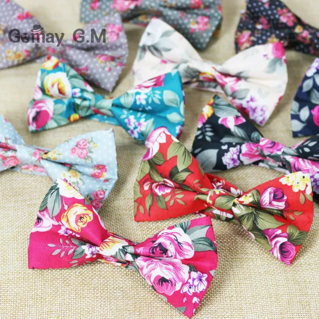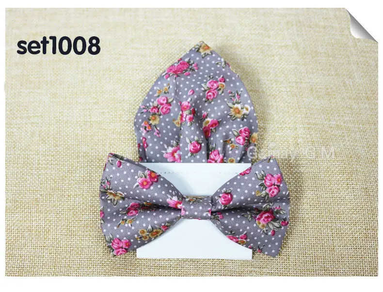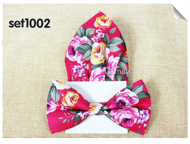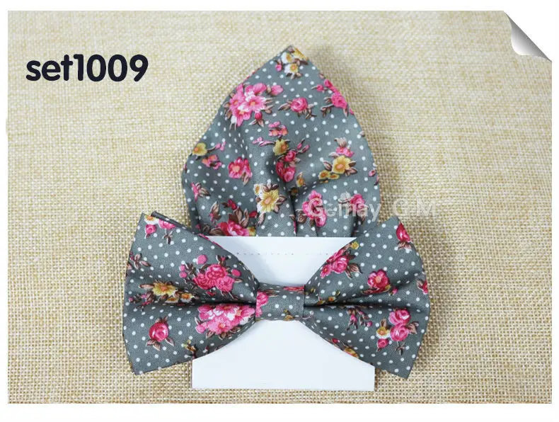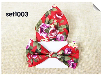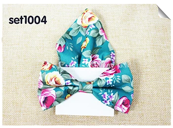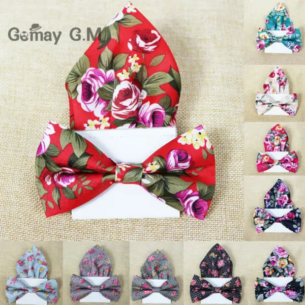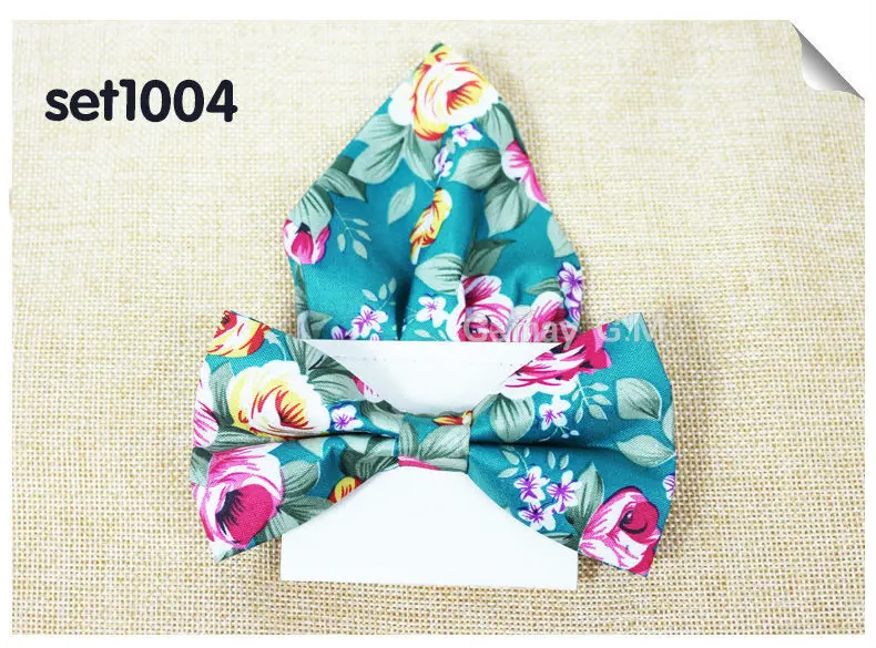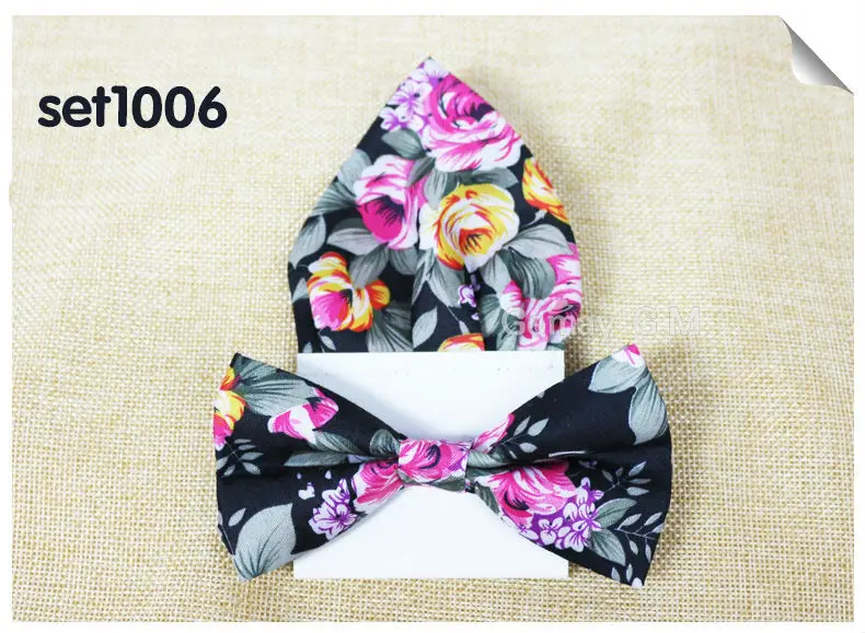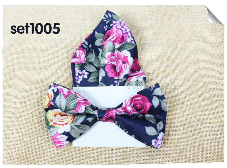 | [해외]꽃 인쇄 남성 나비 넥타이 포켓 스퀘어 세트 부품 캐주얼 조절 성인 100% 폴리 에스테르 나비 넥타이 손수건 |