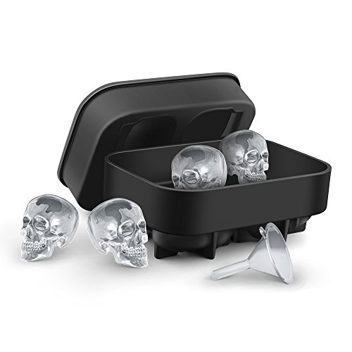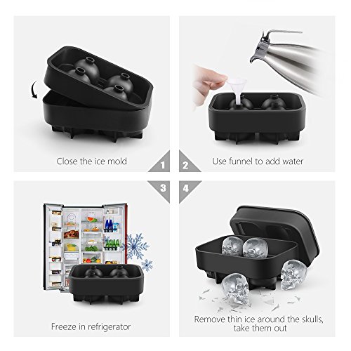 Food Grade Safe Silicone: FDA approved, non-tocix, eco-friendly, dishwasher safe silicone ice cube makes it easy to make a cool skull ice cube, and it comes with a little funnel which helps you to fill drinks and wine easily.