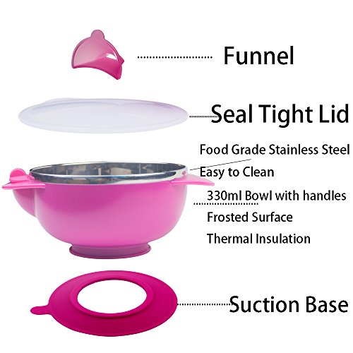 -. Title : RyanLemon Suction Bowl Insulated Water Bowl Stainless Steel Bowl Baby Bowls Funnel Water Injection Baby feeding bowl ,Bonus Grinding Masher Bowl Set and 2 of Heat Sensitive Spoon