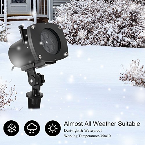 -Weather-resistant and waterproof(IP65):There is weather-resistant cap at the top of projection light. You do not need to be afraid of using it in rain day, but please do not use it in heavy rain day
