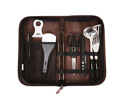 -. Title : Camping Outdoor Indoor Kitchenware Cooking Utensils Cookware Kitchen Tool Set Knife Scissors Tongs Scoop 9p