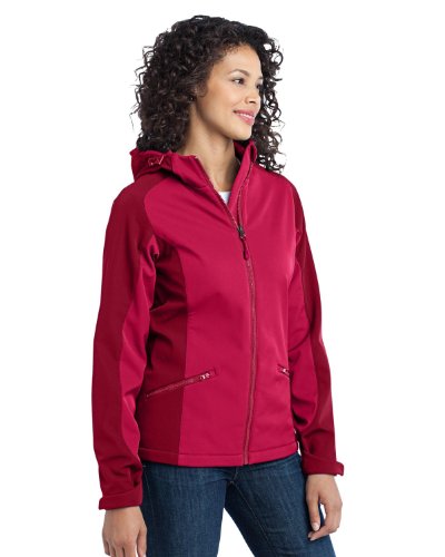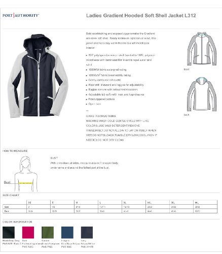 Studio : Port Authority Publisher : Port Authority Product Description Style #: L312 Bold colorblocking and exposed zippers make the Gradient one sleek soft shell. Ready to take on rain or wind this jacket also feels warm thanks to a soft microfleece interior. 93/7 poly/spandex woven shell bonded to 100% polyester microfleece with laminated film insert to repel water and wind 1000MM fabric waterproof rating 1000G/M 2 fabric breathability rating Gently contoured silhouette Hood with drawcord and toggles for adjustability Raglan sleeves with articulated shoulders Adjustable tab cuffs with hook and loop closures Front zippered pockets Open hem 0