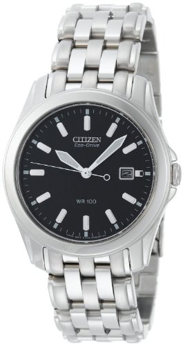 -. Feature : Eco Drive technology is fueled by light and it never needs a battery / Date function / Screw back case / Water-resistant to 330 feet (100 M)