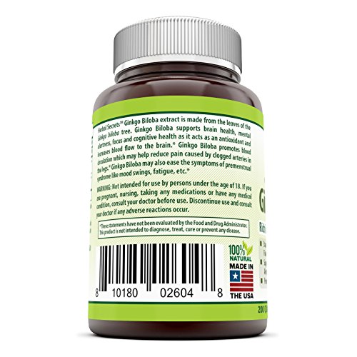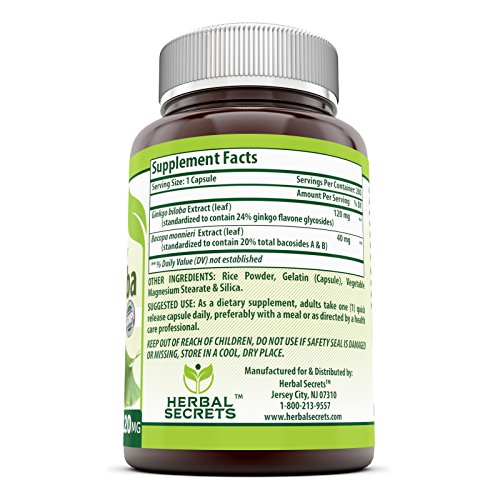 Herbal Secrets Ginkgo Biloba Supplement - 120 mg Ginkgo Leaf Extract (Standardized to Contain 24% Ginkgo Flavone Glycosides) in each Capsule - Memory...