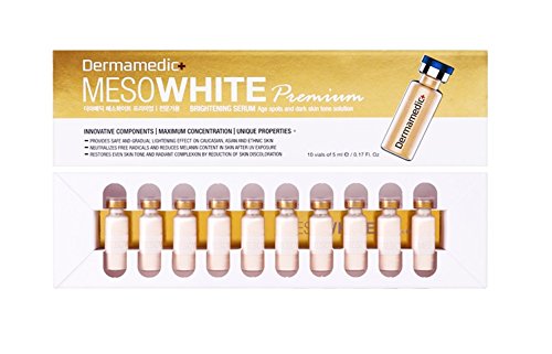 -. Feature : Dermamedic MESOWHITE Premium Brightening Serum / Age spots and dark skin tone solution / Provides safe and gradual lighting effect on caucasian, asian and ethnic skin / Neutralizes free radicals and reduces melanin content in skin after UV exposure / Restores even skin tone and radiant complexion by reduction of skin discoloration