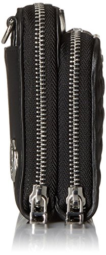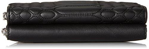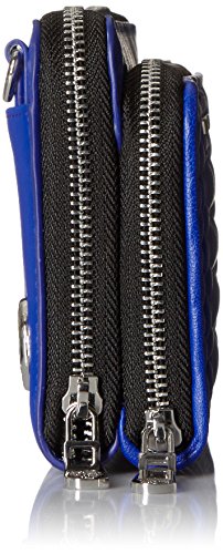 -. Feature : Mini cross-body bag with geometric quilting at front and multiple zip-around compartments / Optional adjustable strap