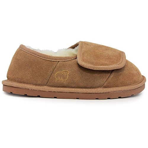 Product DescriptionWellness designed, adjustable slipper lined with premium Australian sheepskin. Cow suede upper and Lamo tpr comfort-flex outsole.0