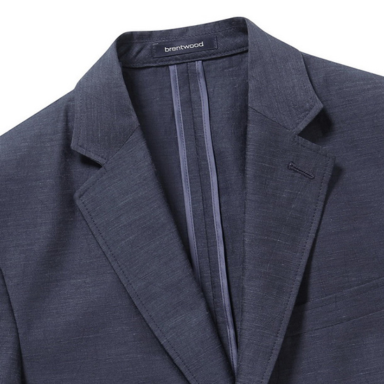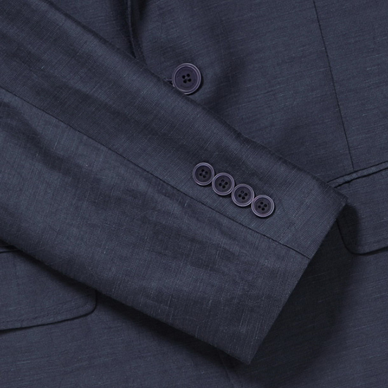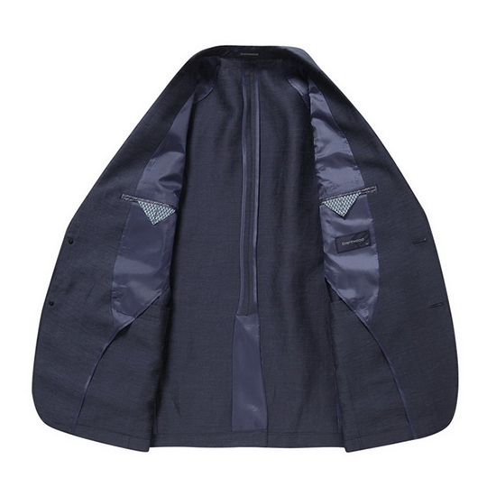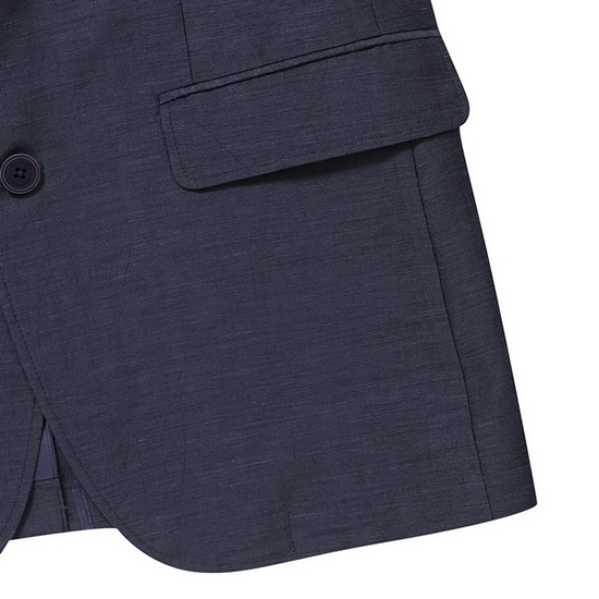 - 기본 라펠 디자인과 가슴판 웰트 포켓으로 클래식함.