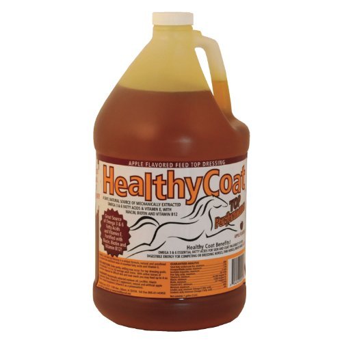 Studio : RJ MATTHEWS Publisher : RJ MATTHEWS Binding : Misc. Product Description Total supplemental nutritional package provides a safe, all-natural, rich source of omega- 3 -6 fatty acids and vitamin E for a high gloss coat and strong hooves, while preventing skin and coat problems. Unique, mechanical extraction process preserves essential fatty acids and fragile nutrients and maintains their nutritional value; prevents exposure to air, light heat and processing which destroys fatty acids in dry feed. Healthy Coat's unrefined formula, fortified with niacin, biotin and vitamin B12, provides a highly digestible energy supplement for competing or breeding horses, thin horses and brood mares, and promotes horse"s optimum overall health, top performance, good digestive tract health and efficiency, a strong immune system, and healthy, flexible joints and hooves. Helps maintain high levels of muscle glycogen for more endurance and energy at stressful times. Aids in absorption of other fat-soluble vitamins. Improves overall body condition for show or sale. Easily digested and slowly metabolized; will not cause nervousness. Apple flavor increases feed palatability. Vitamin E helps preserve the high quality of omega-3 and -6 fatty acids and provides a longer shelf life. Each lb contains min 98% total fatty acids/crude fat, min 250 IU vitamin E, min 34,000 mcg niacin, min 5,000 mcg biotin, min 337 mcg vitamin B12, mechanically extracted soybean oil and lecithin. Dosage: Top-dress grain daily with 1-4 oz for average adult horse; For active horses or difficult skin and coat conditions, feed up to 8 oz. Use at higher dose for a safe, uniform weight builder. 0