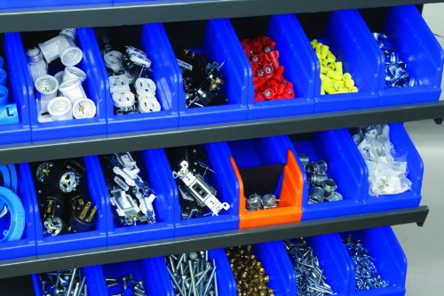 Akro-Mils 36462BLKRED Indicator Inventory Control Double Hopper Shelf Bin, 11-5/8-Inch L x 6-3/4-Inch W x 4-Inch H, Black/Red, 12-Pack