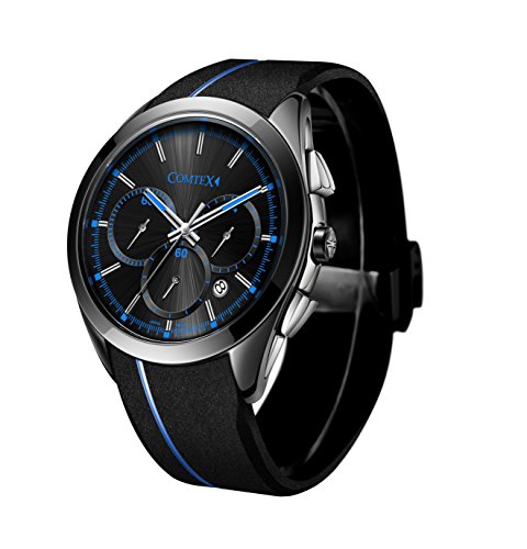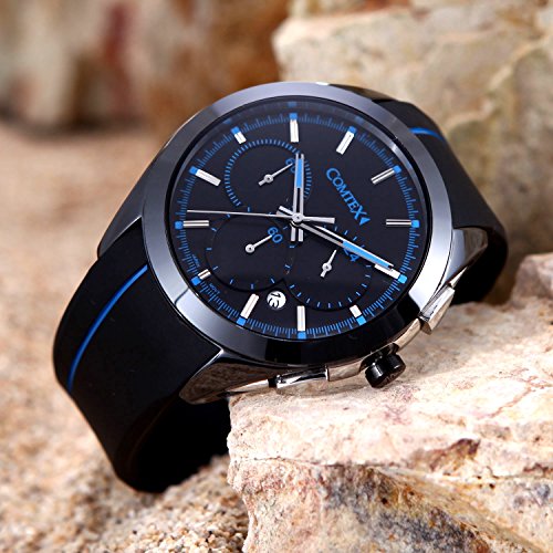 -. Title : COMTEX 腕時計 メンズ ブラック スポーツ クロノグラフ ウオッチ クォーツ 時計 ブルー