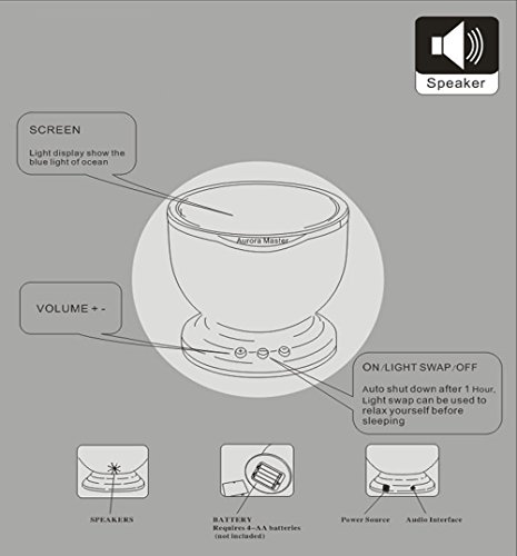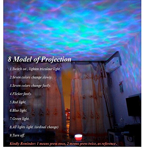 It will create a calm and relaxed atmosphere for your living room or bedroom and Projects a wide swath of undulating colors on our cathedral ceiling as you drift off into another world...you can chose to project single colors or multicolored.