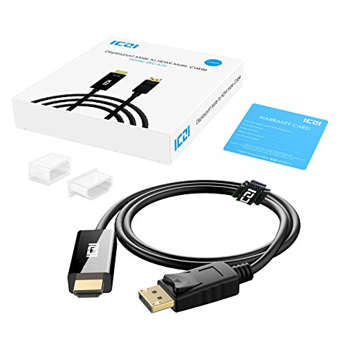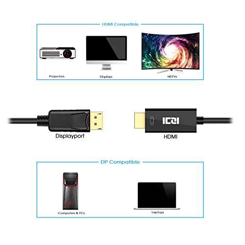DP to HDMI, ICZI DisplayPort to HDMI Adapter Cable ( 5ft / 1.5m ), Male to Male, 1080P Supported, Gold-Plated, for Connecting PC/Laptop to HDTVs, Projectors, Displays
