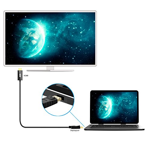 Convenient cable directly connects a DisplayPort (DP, DP++, DisplayPort++) equipped computer to an HDTV, monitor, or projector with HDMI input.