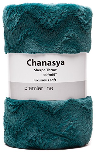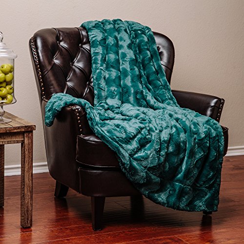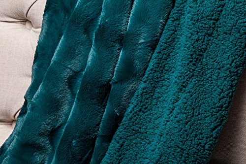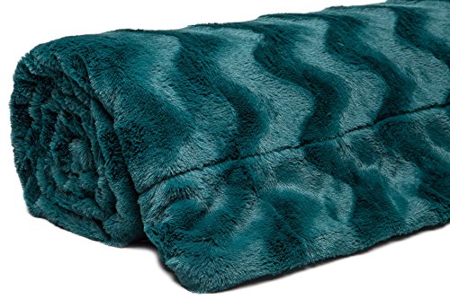 Chanasya Super Soft Warm Elegant Cozy Fuzzy Fur Fluffy Faux Fur with Sherpa Wavey Pattern Plush Evergreen Teal Throw Blanket (50" x 65")- Solid Evergreen Teal