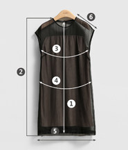 | 尺码 | ①后中长 | ②前衣长 | ③胸围 | ④腰围 | ⑤下摆围 | ⑥袖长 | ||