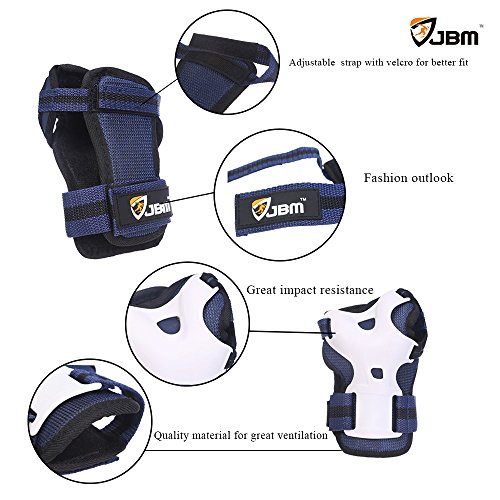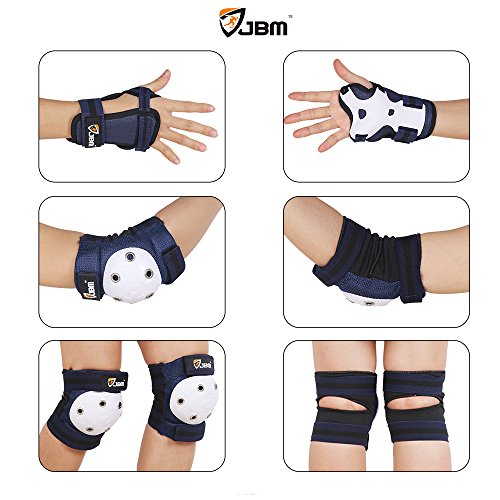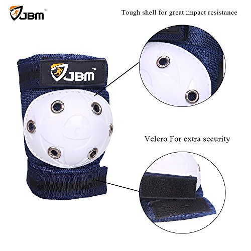 -. Brand : JBM international -. Feature : ADJUSTABLE STRAPS OR ONE SIZE FITS ALL / MOST, racing-quality knee pads, elbow pads, wrist guards combination set designed for Kids Children / PRODUCTS PARAMETER, knee pads elbow pads and wrist guards total weight 11.9oz , EVA foam padding, attach easily with velcro straps, light for carry and suit up offer great support and protection with high density impact-resistant molded PP PE splints / SUCCINCT DESIGN, adjustable strap system for a custom fit, all-round protection ergonomically designed for comfort on your skates, skateboards, skateboarding, roller skate, inline roller skating activities / MULTI SPORTS PURPOSE, ride-ons, paintball, cycling, BMX, bikes, ATV, MTB and other extreme sports, you can be kept your kids children away from dangerous during the outdoor activities, and you can enjoy the riding experiences and adventure with the ANTI SHOCK Designed Protective Gear ( Knee pads and elbow pads with Wrist Guards ) / PADS SIZES, KIDS knee pads 15*11*4cm, min: 23cm, max: 34cm, KIDS elbow pads 13.5*10*3cm, min: 14cm, max: 28cm, KIDS wrist guards 13.5*9*3cm -. IsAutographed : 0 -. IsMemorabilia : 0 -. Label : JBM International -. Manufacturer : JBM International -. MPN : JBM-PG-HR5, JBM-PG-HR6 -. NumberOfItems : 6 -. PackageQuantity : 1 -. PartNumber : JBM-PG-HR5, JBM-PG-HR6 -. ProductGroup : Sports -. ProductTypeName : OUTDOOR_RECREATION_PRODUCT -. Publisher : JBM International -. Studio : JBM International -. Title : JBM Children Kids Sport outdoor Protective Knee and Elbow Pads With Wrist Guard for Street Bicycle, Ride Bike, Cycling Inline & Roller Skating, Biking, BMX, Inline Roller, Skateboarding Activities -. Warranty : 1 Year