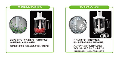 소재 재질:본체 빅 쵸파(chopper) 뚜껑/PP(폴리프로필렌)고, 그립/TPE(열가소성 엘라스토머)수지,블랜더거품이고 기빅 쵸파(chopper)인/스테인레스,빅 쵸파(chopper) 본체 전용 계량 컵/SAN(《스치렌아쿠리로니토리루》)수지,스파《추라》/PP(폴리프로필렌)실리콘
